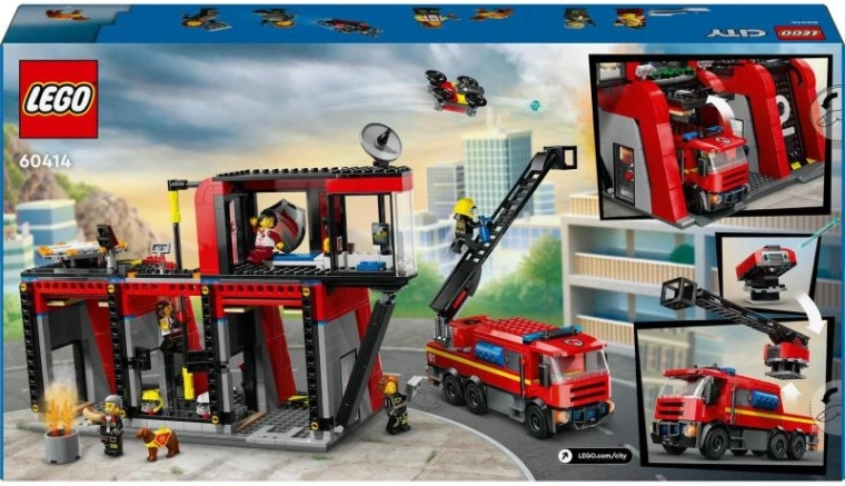 - Estación de bomberos de acción: base moderna, helipuerto, barra para deslizar minifiguras, cocina y zonas de descanso.
