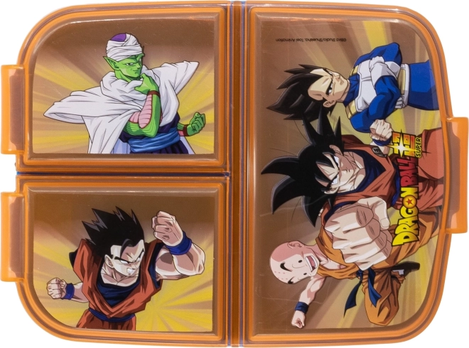 Práctica caja para merienda con múltiples compartimentos para niños y fans de la serie DRAGON BALL. Ofrece construcción resistente, tres compartimentos separados para una merienda variada y un atractivo diseño con licencia. No contiene BPA y es ideal para la escuela, el parque y las excursiones.