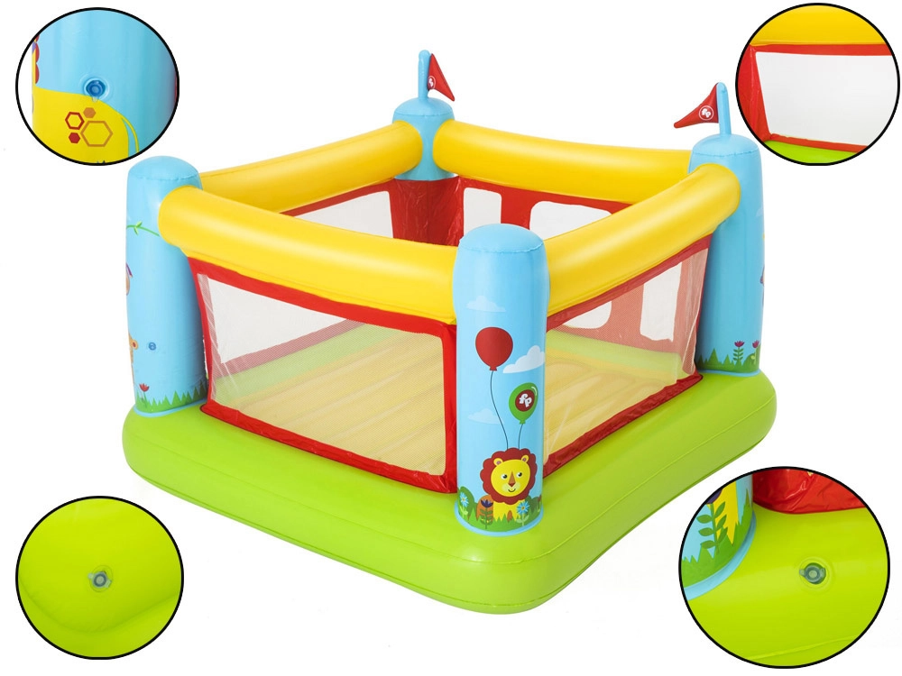 El castillo hinchable Bestway FISHER‑PRICE crea un espacio seguro y cómodo para saltar, jugar y el juego libre. Los paneles de malla transparentes garantizan buena visibilidad y flujo de aire, mientras que las paredes y el suelo de aire acolchado amortiguan los impactos. Gracias a sus dimensiones compactas, cabe en la mayoría de habitaciones infantiles y también en la terraza o el jardín.