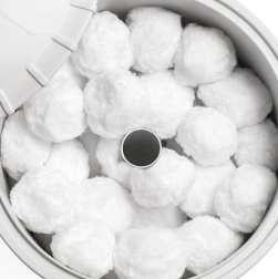 Una gran ventaja es su larga vida útil y la posibilidad de reutilizarlas. Cuando se ensucien, simplemente lava las bolas en la malla incluida (lavado a mano) y devuélvelas al filtro. Esto se traduce en menores costes de operación y una menor carga para el medio ambiente.