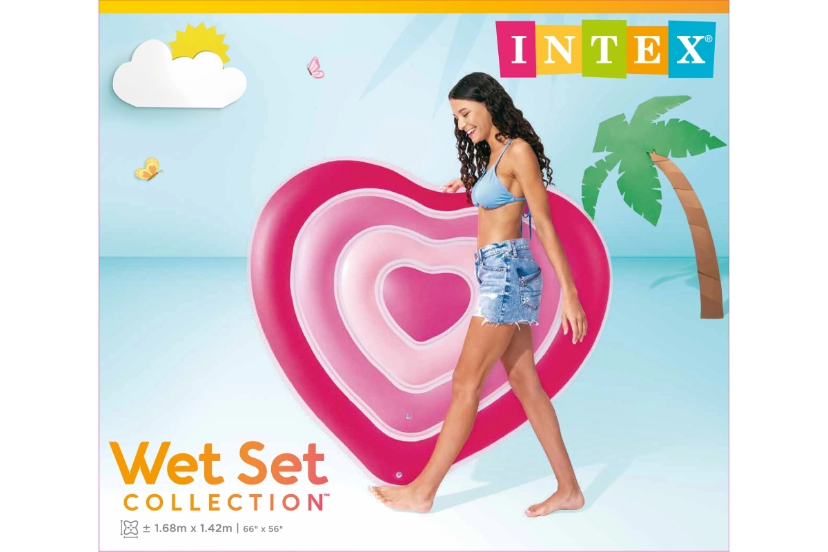 Disfruta de los días soleados con la colchoneta Intex en forma de corazón, que destaca por su apariencia y practicidad. Gracias a sus dimensiones de 168 × 142 cm, ofrece espacio suficiente para un descanso cómodo y diversión estable en el agua. El paquete incluye un parche, por lo que podrás solucionar fácilmente pequeños percances.