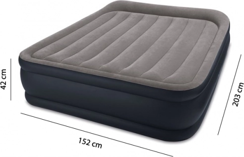 La bomba eléctrica integrada permite un uso cómodo sin accesorios adicionales: en pocos minutos tendrás una cama doble completa y, tras desinflarla, la guardarás rápidamente en el bolso de transporte. La altura elevada de 42 cm facilita acostarse y levantarse y ofrece una comodidad similar a la de una cama tradicional.