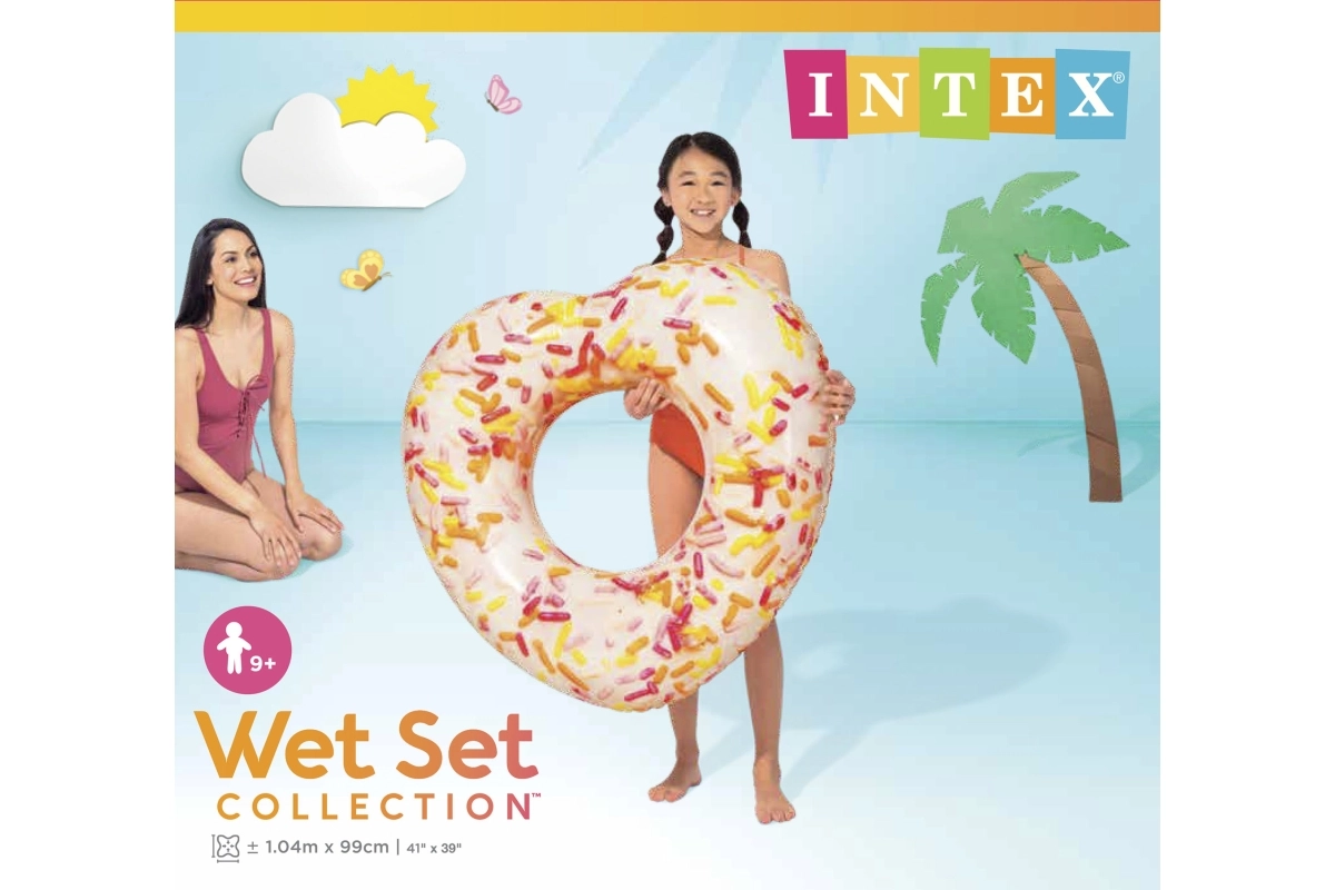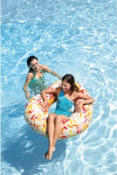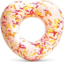 Este original flotador inflable con forma de corazón encantará a todos los amantes del agua. El estampado realista de donut con chispas aporta un ambiente divertido a tus baños, mientras que el material firme y duradero garantiza descanso seguro y cómodo sobre la superficie del agua.