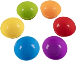 Los cuencos y figuras de colores ayudan a los niños a reconocer los colores y a contar de forma sencilla a través del juego. Ideal para la preparación preescolar.