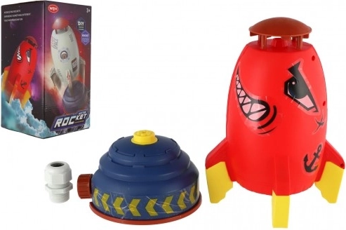 Divertido juguete de jardín para días calurosos: cohete de agua con aspersor que, al conectar la manguera, se eleva y crea una refrescante llovizna. Conexión sencilla, diversión segura y juego creativo en el jardín para niños a partir de 3 años.
