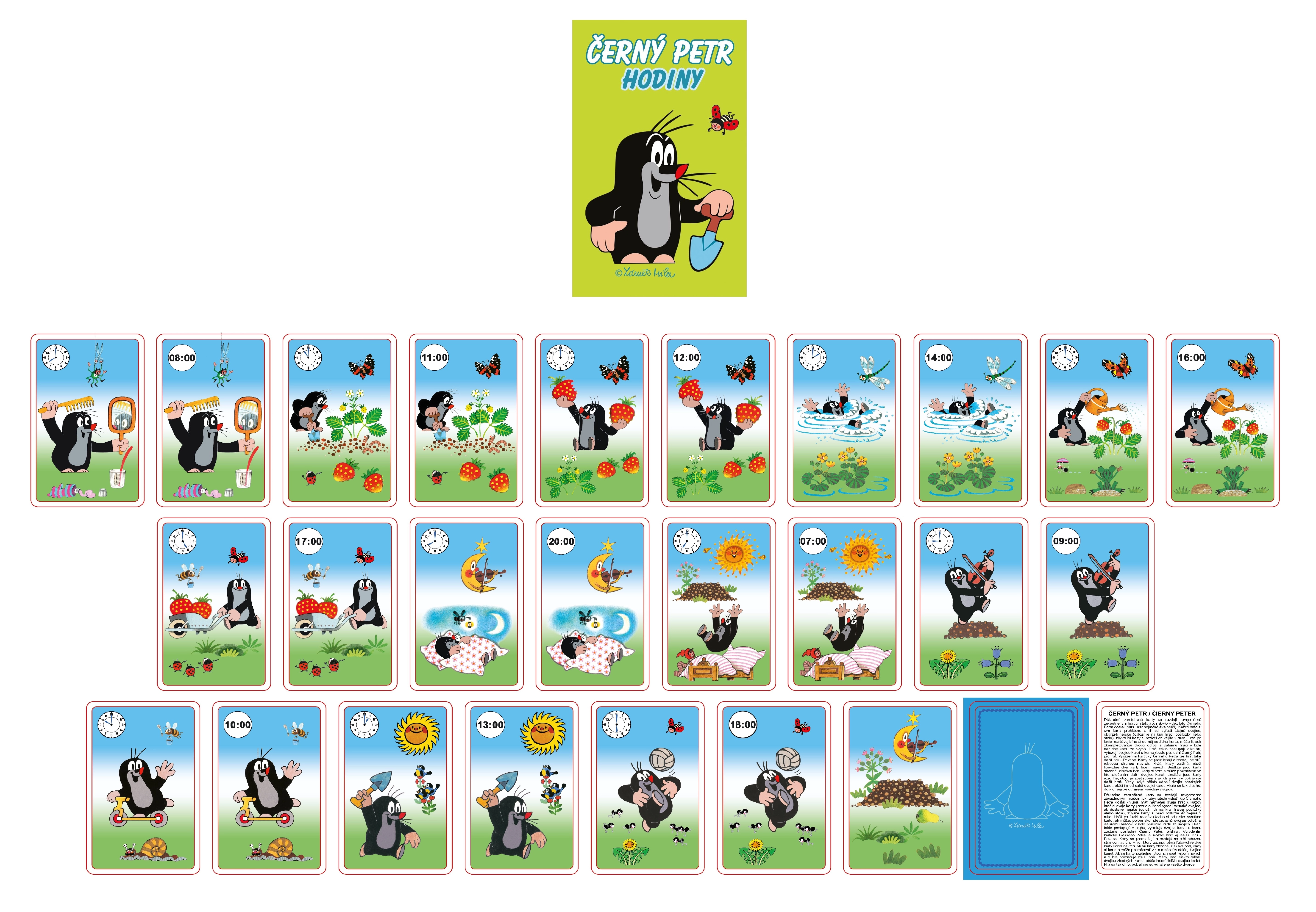 Disfruta del clásico juego Černý Petr con el querido motivo del Topito y enseña a los niños a reconocer la hora. Las cartas con relojes fomentan el pensamiento lógico, la percepción visual y el aprendizaje de las horas de manera amena.