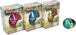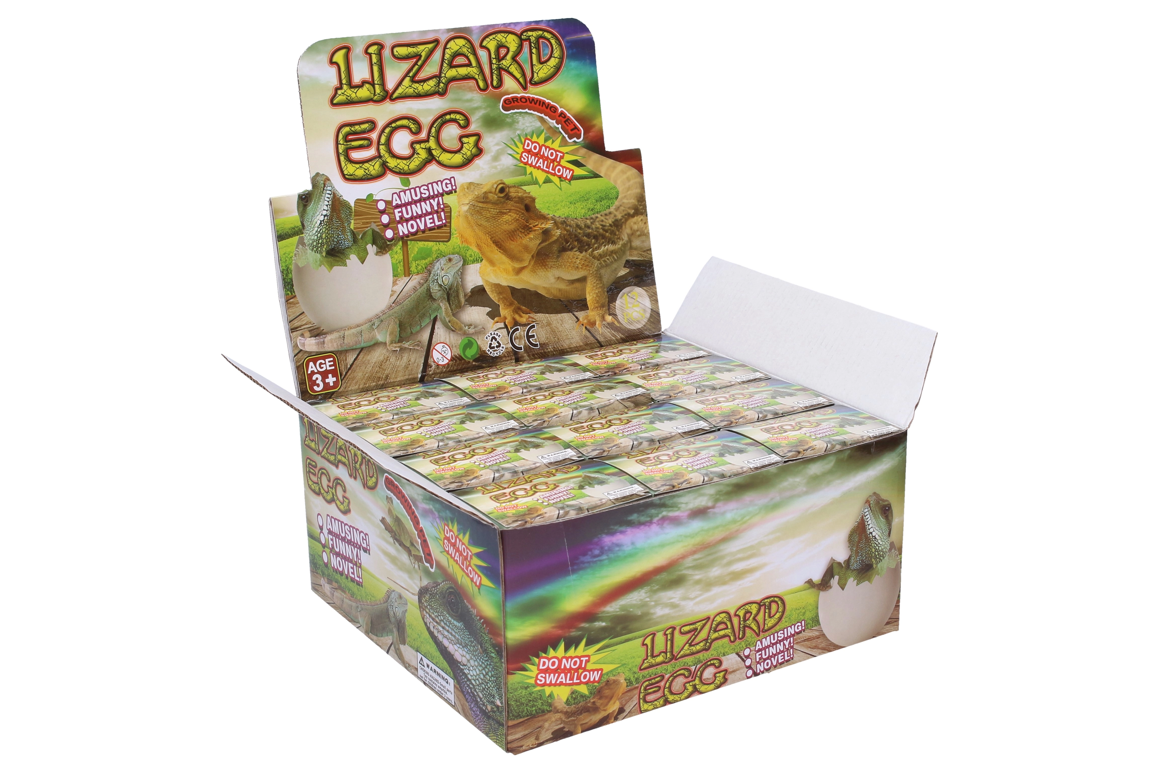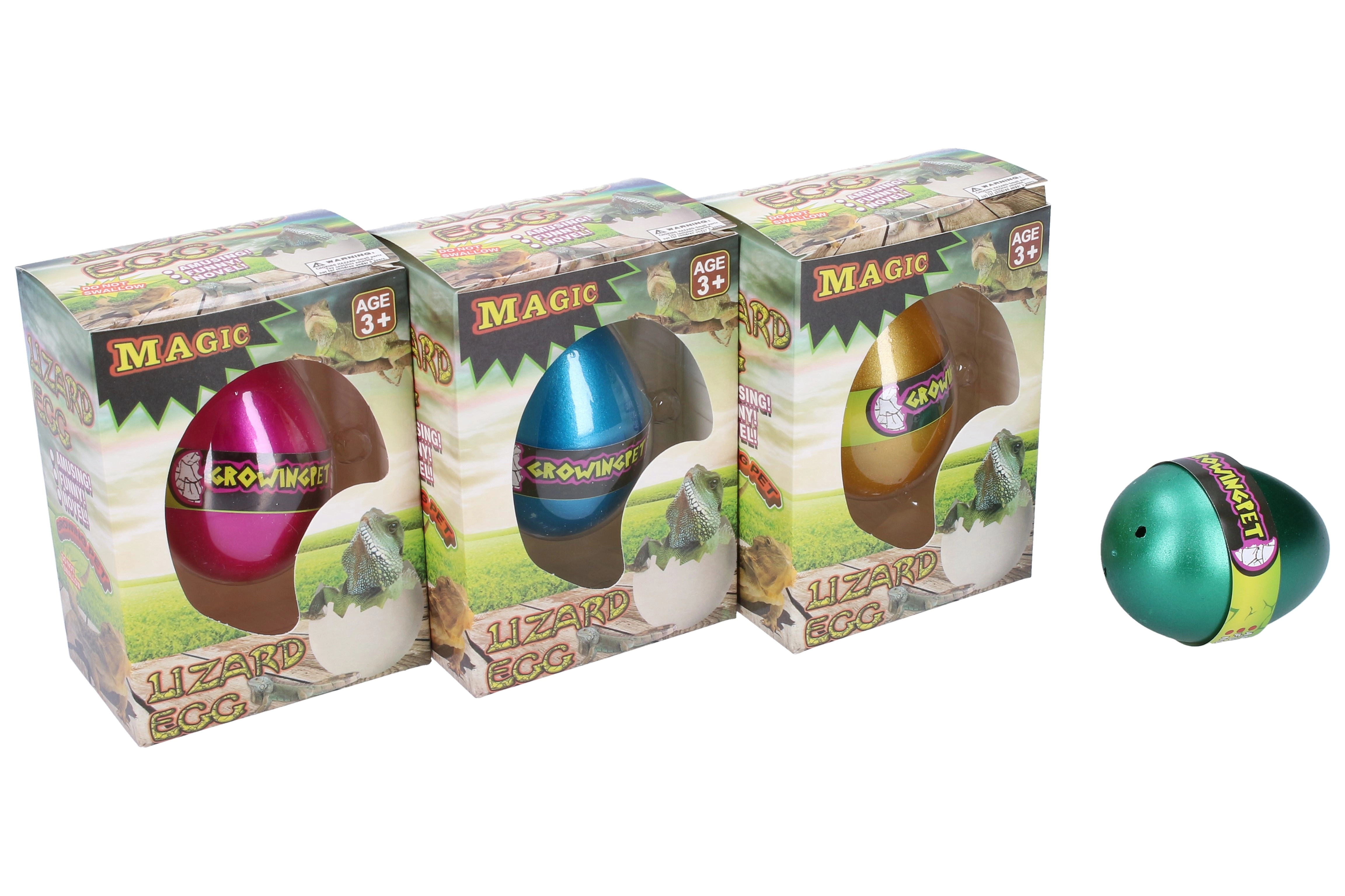 ¡Estos increíbles huevos guardan un secreto: una lagartija que crece mágicamente! Solo tienes que poner el huevo en agua y observar cómo se va abriendo poco a poco y aumenta de tamaño hasta dimensiones sorprendentes. Hay cuatro variantes de color: azul, dorado, verde y morado, que aportan variedad y emoción en cada apertura.