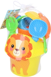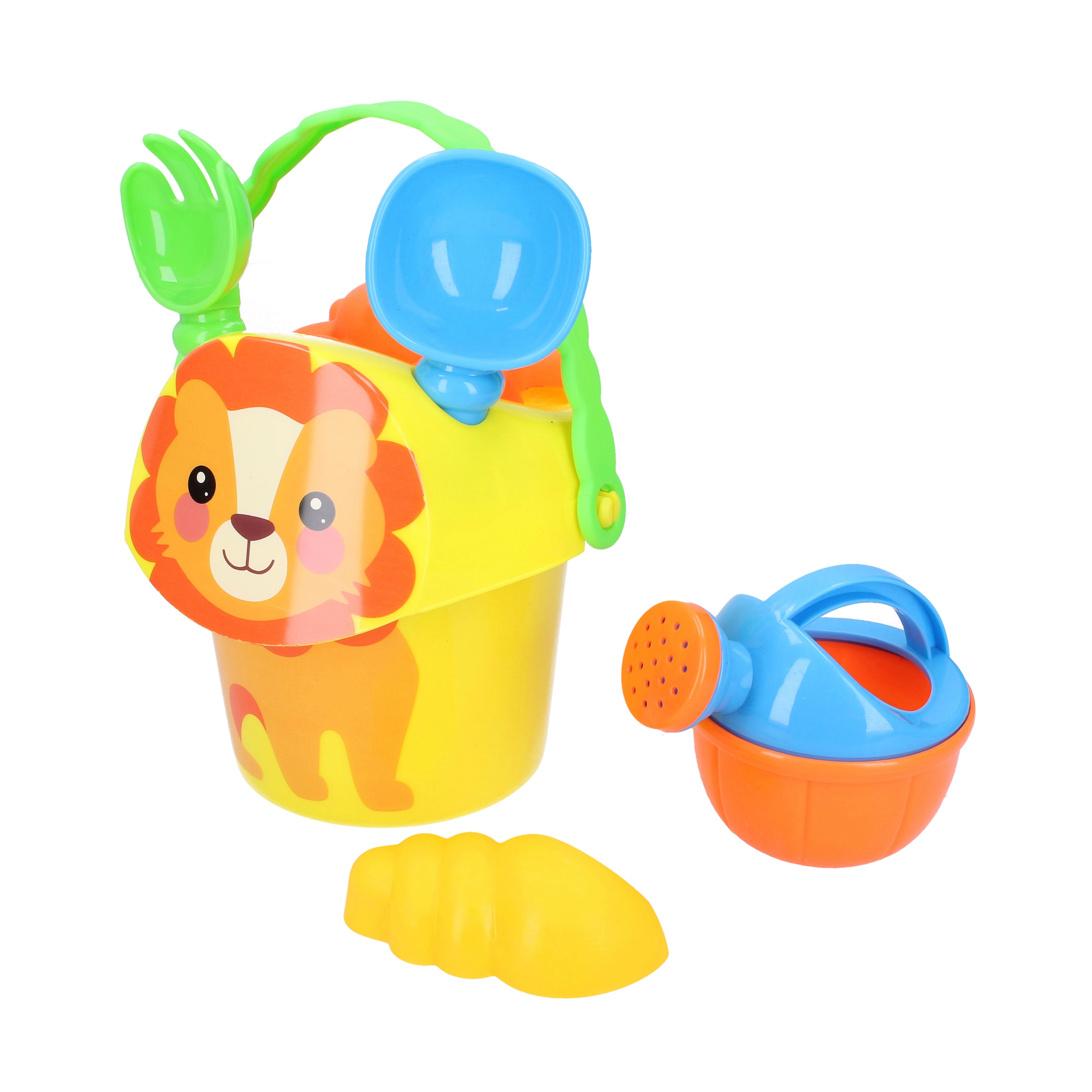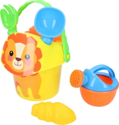 - Cubo con imagen de animal (15 cm), pala, rastrillo, regadera, 2 moldes