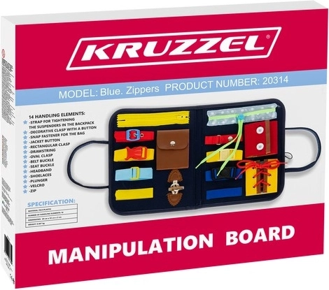 El tablero manipulativo infantil es una herramienta sensorial que ayuda a desarrollar la coordinación mano-ojo, el pensamiento lógico y la autonomía. Ofrece 14 elementos manipulativos, como cremalleras, botones, hebillas y cordones para practicar habilidades cotidianas.