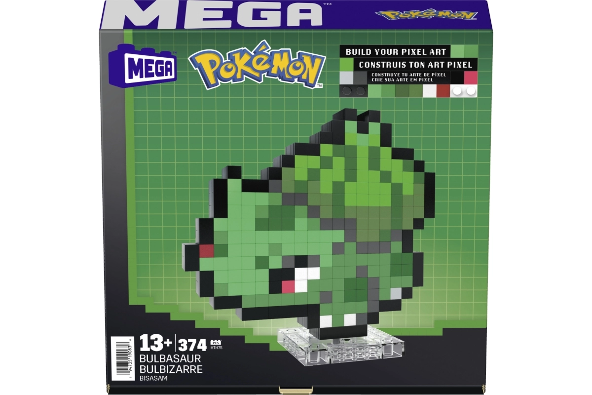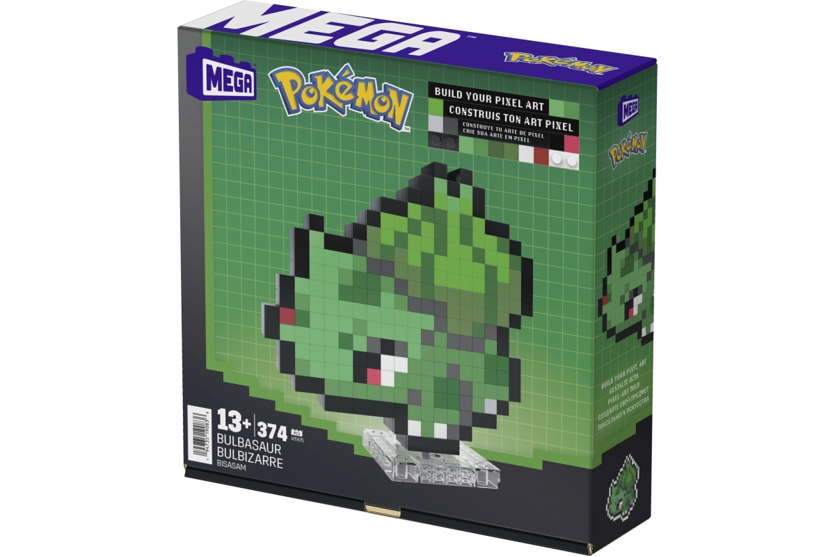 Construye al icónico Bulbasaur en estilo retro y decora tu espacio con una original figura pixelada. Con el set oficialmente licenciado de MEGA crearás un modelo detallado inspirado en Pokémon Pixel Art, que se puede exponer en un soporte o colgar en la pared. Ideal para coleccionistas y constructores adultos que buscan una decoración con un toque de nostalgia.