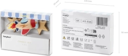 Estas velas decorativas aportan alegría y brillo a cualquier fiesta de cumpleaños infantil. El set incluye una vela con forma de cohete en colores vivos que destaca en la tarta como centro de diversión. A los lados hay dos velas en forma de estrellas doradas que añaden a la celebración el encanto de una aventura espacial.