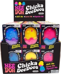 Conoce el pollito antiestrés NeeDoh: un juguete para apretar divertido que ha conquistado a niños y adultos. Apriétalo suavemente y observa cómo su cuerpo blando vuelve a su forma: alivio táctil inmediato y una dosis de buen humor en la palma de tu mano. La cáscara con estilo de huevo funciona como soporte alegre y parte del juego.
