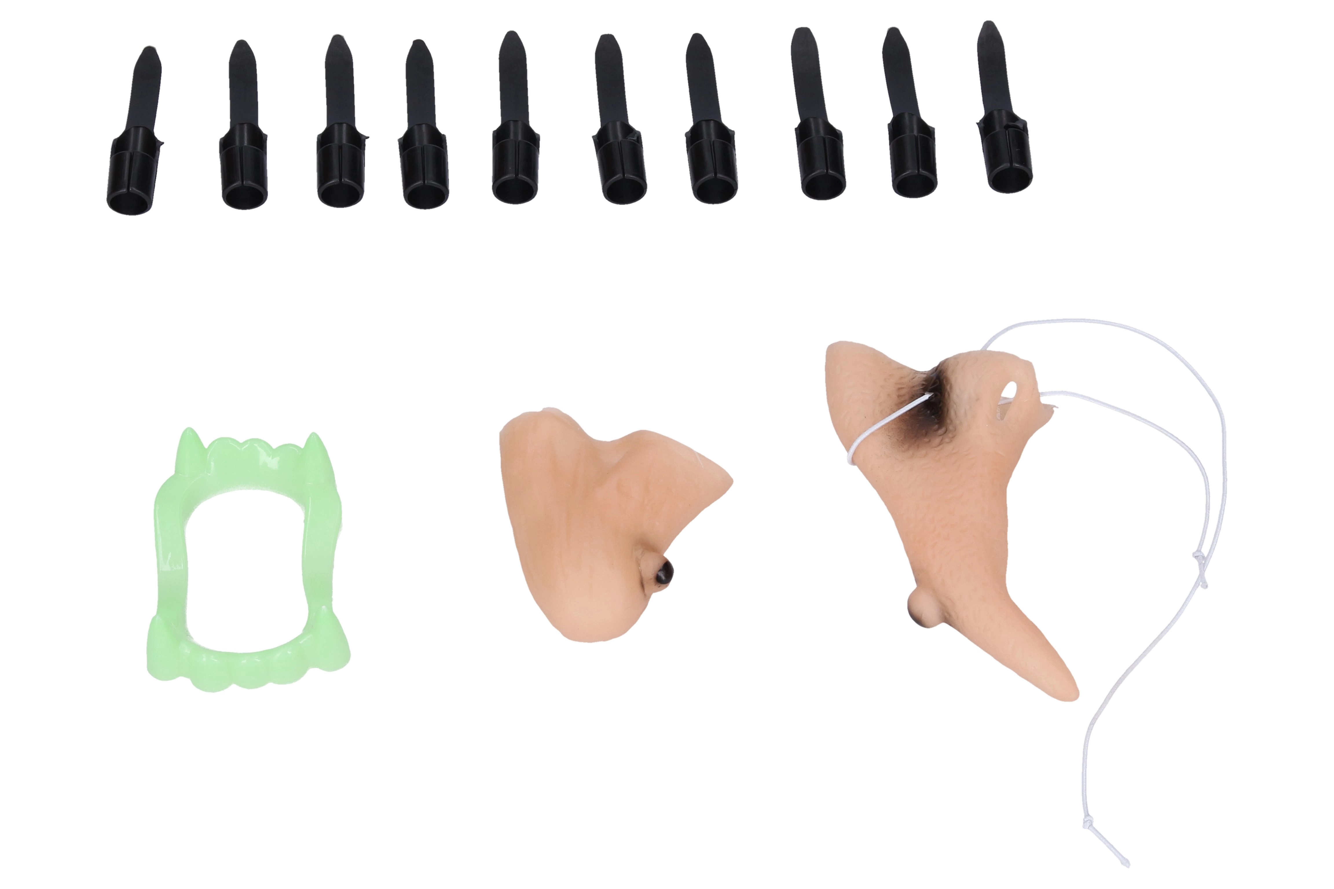 - Juego completo – sombrero, barbilla, nariz, 10 dedos con uñas y dientes