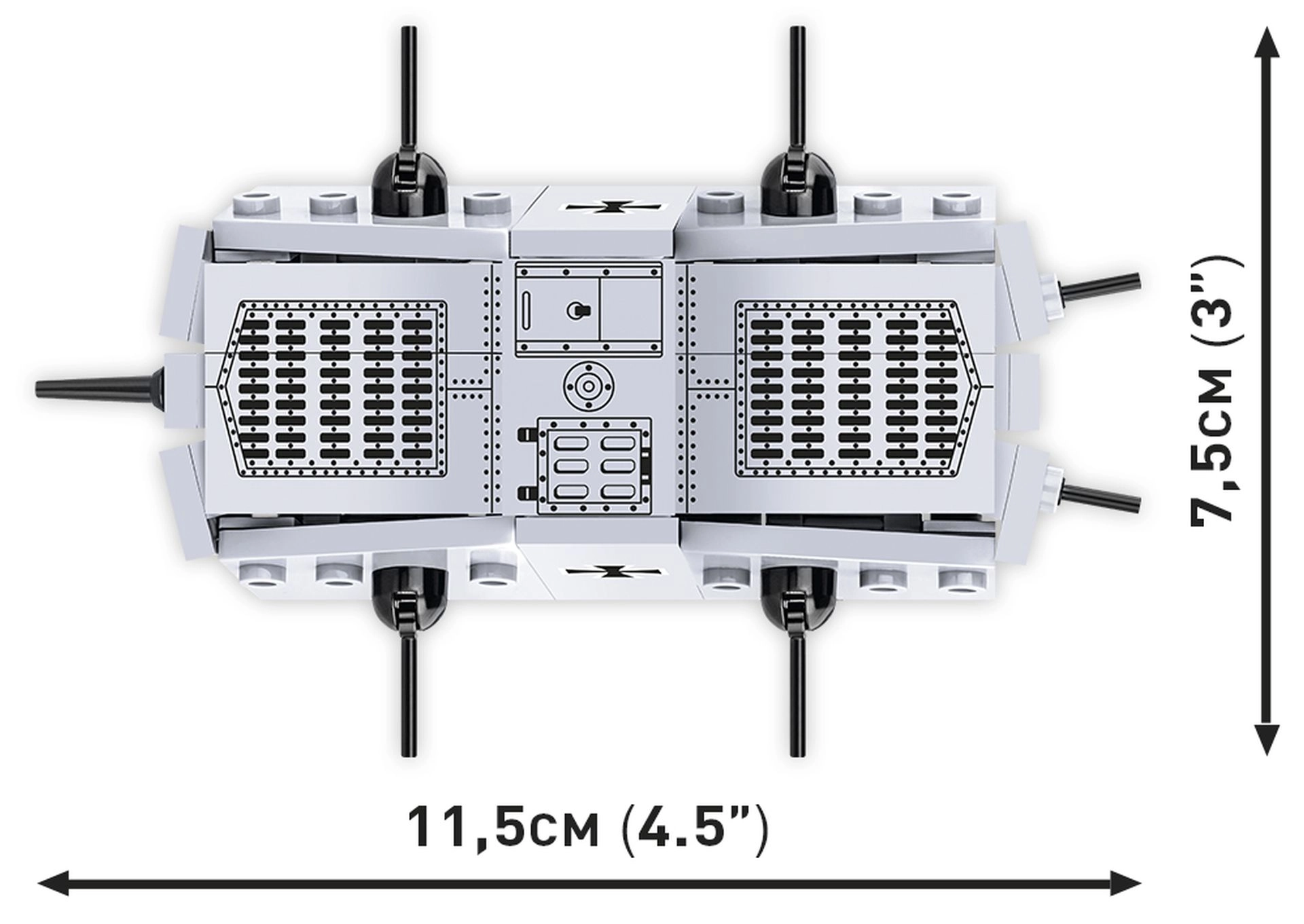 Las piezas están fabricadas en la UE, son resistentes a la deformación y a la decoloración, y totalmente compatibles con otros sets de las principales marcas. Gracias a las ametralladoras móviles y a las ruedas ocultas, el modelo se desplaza fácilmente sobre superficies. Es una introducción perfecta al mundo de los sets históricos y un atractivo complemento para la colección que cabe en una mesa o estantería.