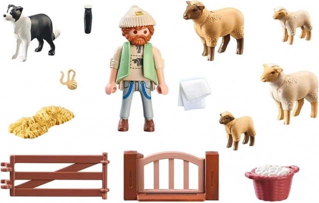 - Joven pastor, Border Collie, 2 ovejas, 2 corderos, cesta, corral