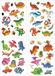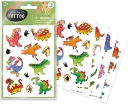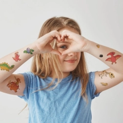 Descubre la colección de tatuajes temporales con dinosaurios favoritos. Los niños pueden elegir su motivo preferido y convertirse en expertos dino en un instante. Los tatuajes se aplican y se retiran fácilmente, y son perfectos para fiestas infantiles, campamentos o como un pequeño detalle.