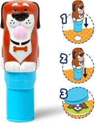 Gracias a su sencillo uso, los niños pueden estampar pegatinas de colores con motivo de perro con un solo movimiento de la mano.