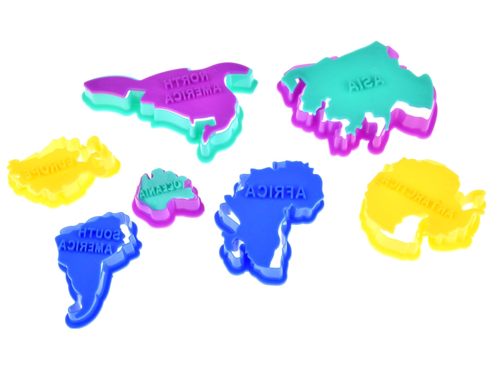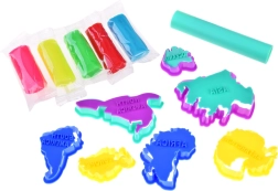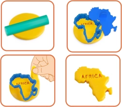 El set incluye todo lo necesario: masa de modelar en cinco colores, 7 moldes con las formas de los continentes, 7 sellos con los nombres de los continentes y un rodillo. Basta con extender la masa en una lámina fina y, con la ayuda de los cortadores, crear los continentes elegidos.