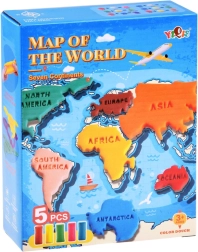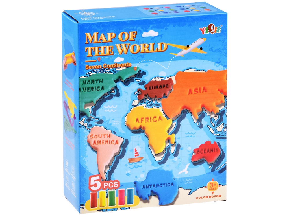 Este set artístico es ideal para niños que aman las actividades plásticas. Desarrolla la destreza manual, la imaginación y la creatividad. El set permite no solo crear las formas de los continentes, sino también aprender sus nombres en inglés y ampliar así los conocimientos de geografía.