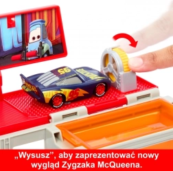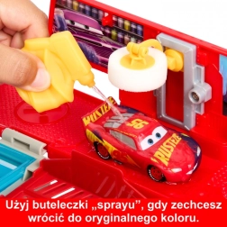 ¡Transforma el aspecto de tu Rayo McQueen en un instante! Este taller móvil en el camión rojo Mack ofrece varias maneras de cambiar el color del coche: con el “spray de pintura”, sumergiéndolo en dos depósitos y secándolo después en el segundo nivel. Los detalles auténticos de la película y los elementos de juego creativos aportan horas de diversión en casa y de viaje.