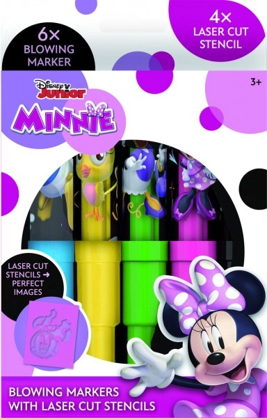 Descubre la alegría de crear con los rotuladores de soplado MINNIE. El set incluye 6 colores intensos y 4 plantillas de papel a color con motivos favoritos que encantarán a los niños. Ideal para el desarrollo de la imaginación y la motricidad fina, en una práctica caja de 12 × 19 cm. Apto para niños a partir de 3 años.