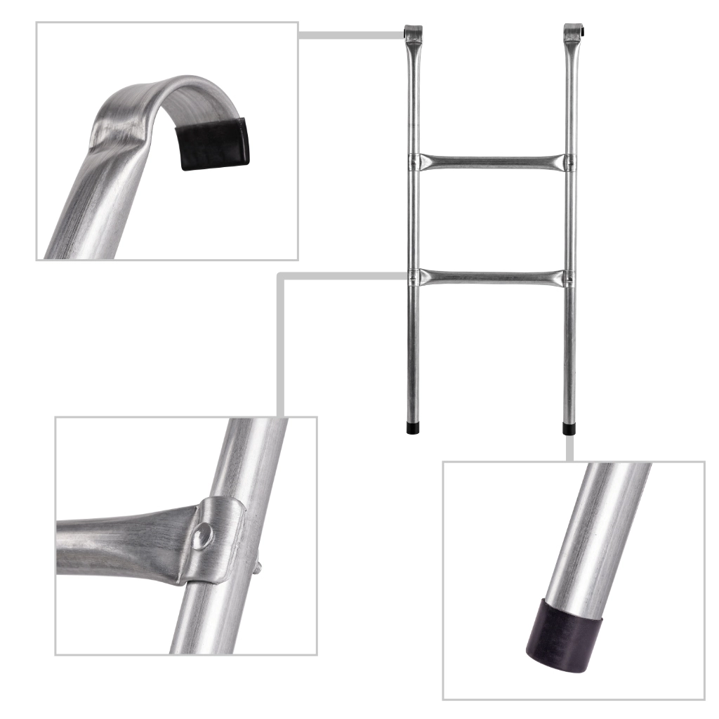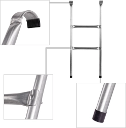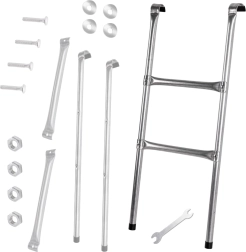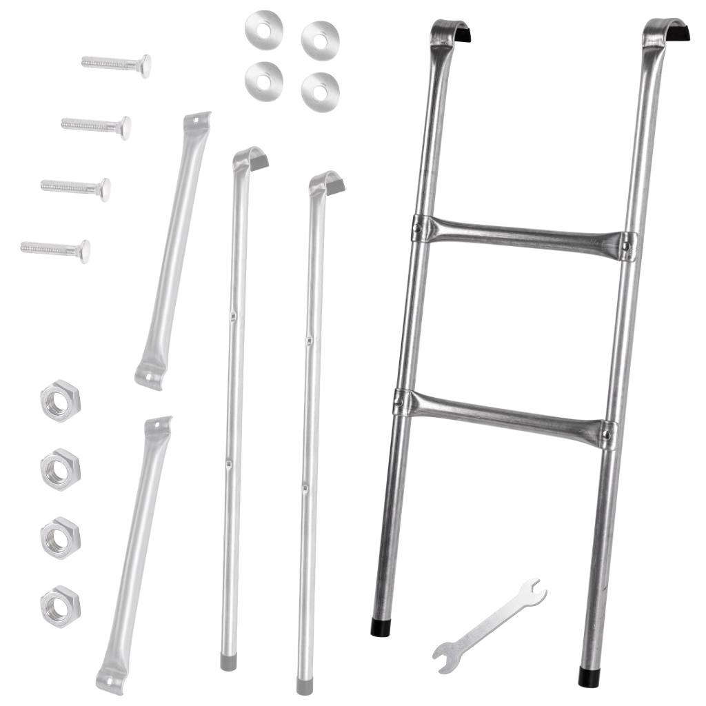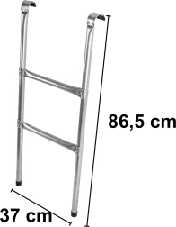 Esta escalera metálica está diseñada para subir y bajar cómodamente de tu trampolín. Es de dos peldaños, lo que garantiza un acceso sencillo. Además de estar fabricada en acero de alta resistencia, cuenta con ganchos para una fijación segura al marco del trampolín.