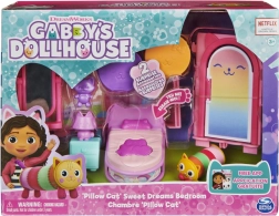 Crea en casa una mágica velada acogedora con el set de juego de la serie animada Gabby’s Dollhouse. El dormitorio “Sweet Dreams” incluye la figura Pillow Cat, una cama transformable tipo parque de juegos, un espejo móvil, una mesita de noche con lámpara gatuna y Gatoentregas con accesorios sorpresa: un librito abatible y una máscara para dormir que la figura puede ponerse de verdad.