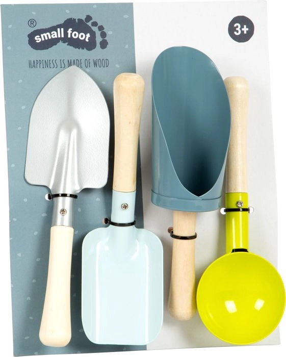 El juego infantil de palas Small Foot incluye todo lo que necesitan los pequeños constructores y jardineros: azadón de mano, pala con cazo, recogedor y pala para carbón. Las robustas cabezas de metal y los mangos de madera lisa garantizan una gran durabilidad y un agarre cómodo incluso durante juegos prolongados.