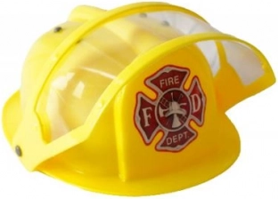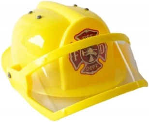 El casco amarillo con emblema de bomberos y líneas limpias potencia la imaginación y aporta a cualquier disfraz una impresión profesional.