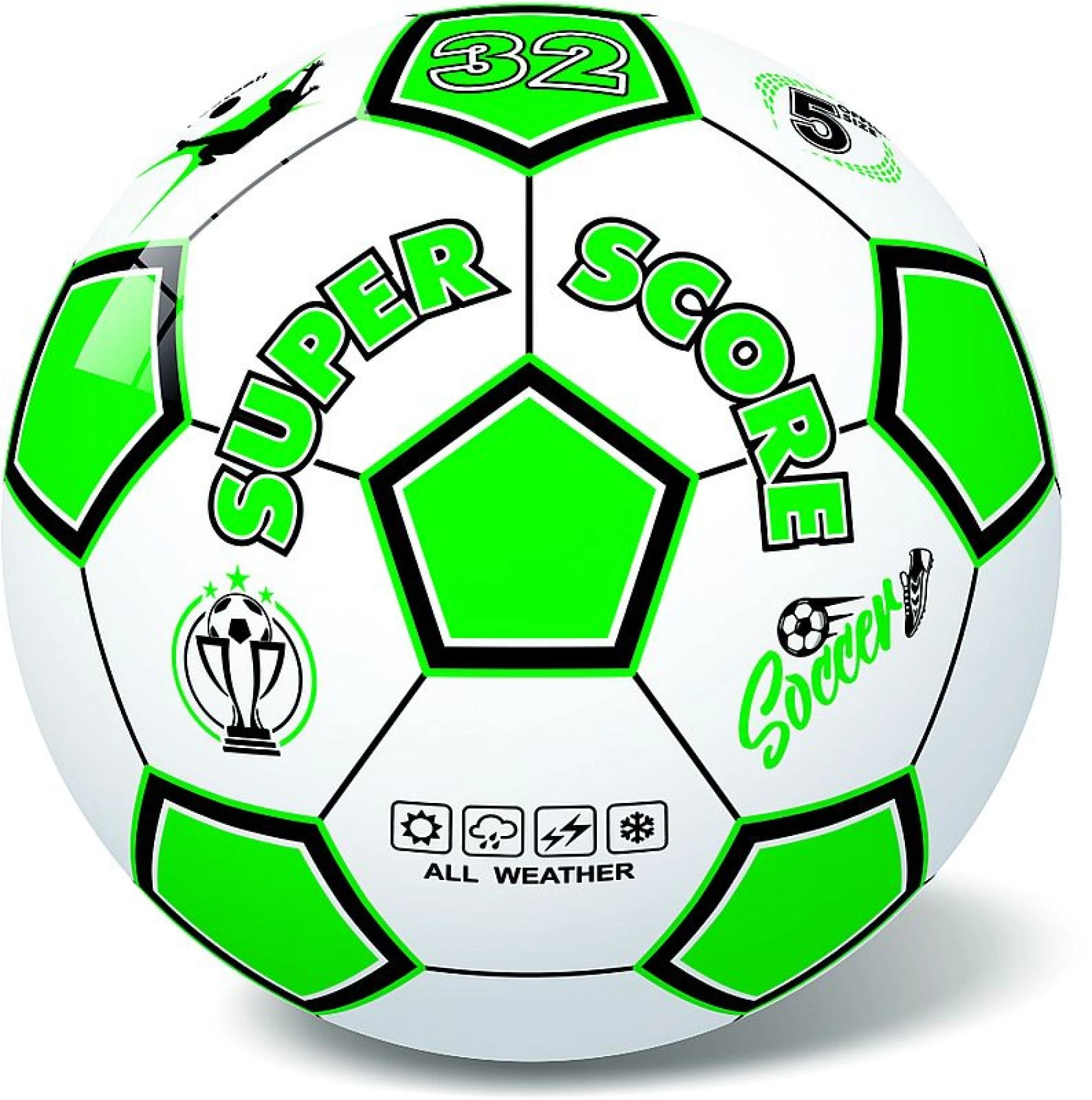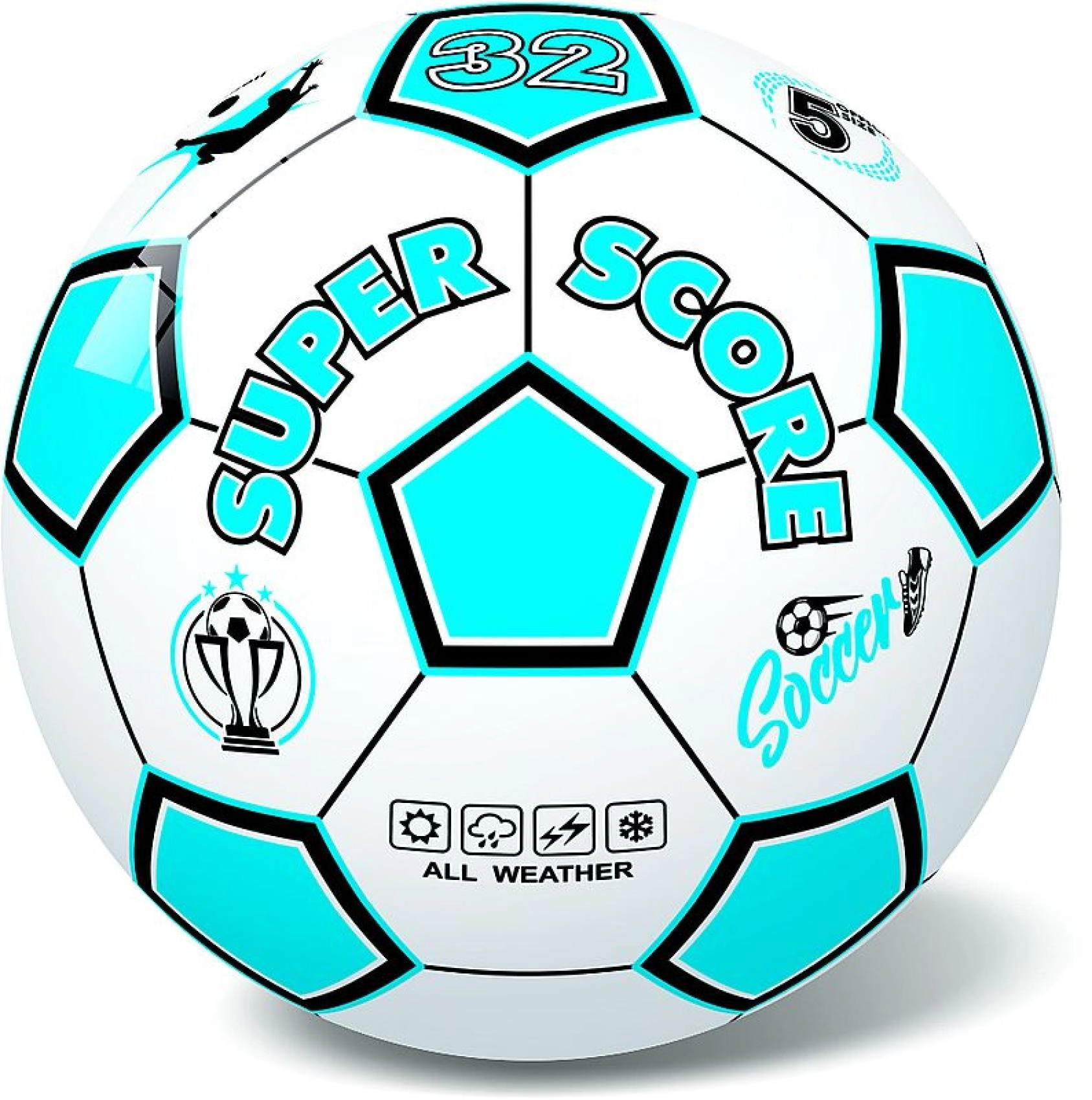 Ligero y resistente, balón de fútbol de 23 cm de diámetro para divertirse en casa, en el jardín o en el parque. Gracias a su diseño all‑weather versátil, construcción de 32 paneles y fácil control, es ideal para niños y adultos. Apto para niños a partir de 3 años.