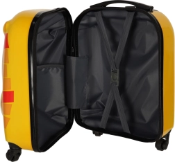 La maleta infantil con el motivo del rey de la selva encantará a cualquier niño y además facilitará el equipaje para un fin de semana o unas vacaciones. Gracias a sus dimensiones compactas y bajo peso, se maneja con facilidad y cumple los requisitos de equipaje de mano. La carcasa rígida de plástico protege el contenido y el llamativo color amarillo con motivo de león no pasa desapercibido.