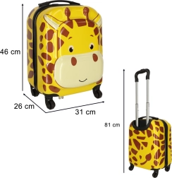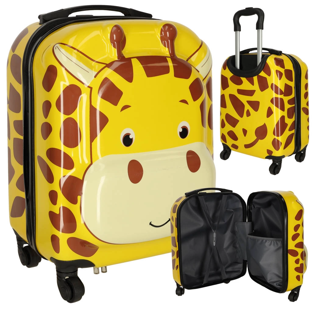 La maleta infantil con motivo de jirafa es la compañera ideal tanto para un fin de semana como para las vacaciones. Sus cuatro ruedas giratorias y el asa extensible garantizan un maniobrado cómodo, de modo que incluso los niños pequeños podrán llevarla sin dificultad. La carcasa rígida de plástico protege el contenido y además es fácil de limpiar.