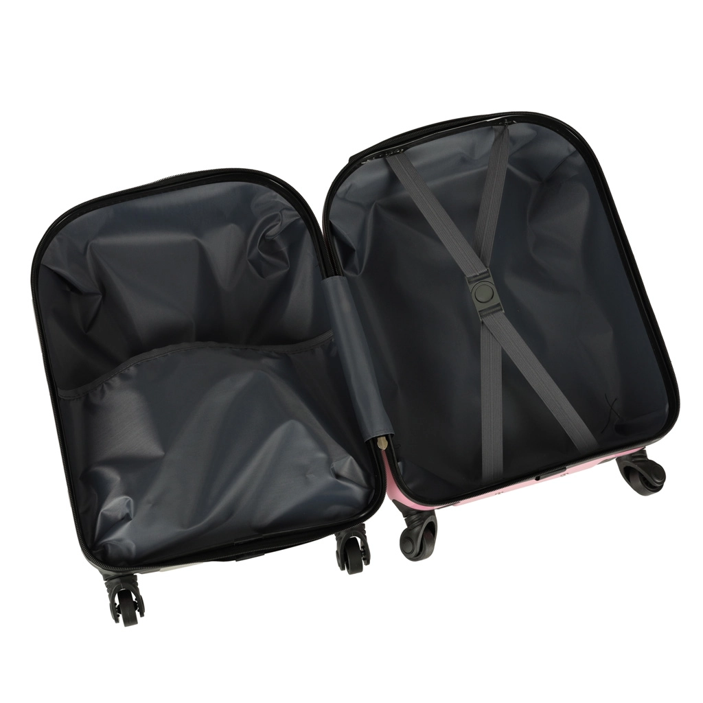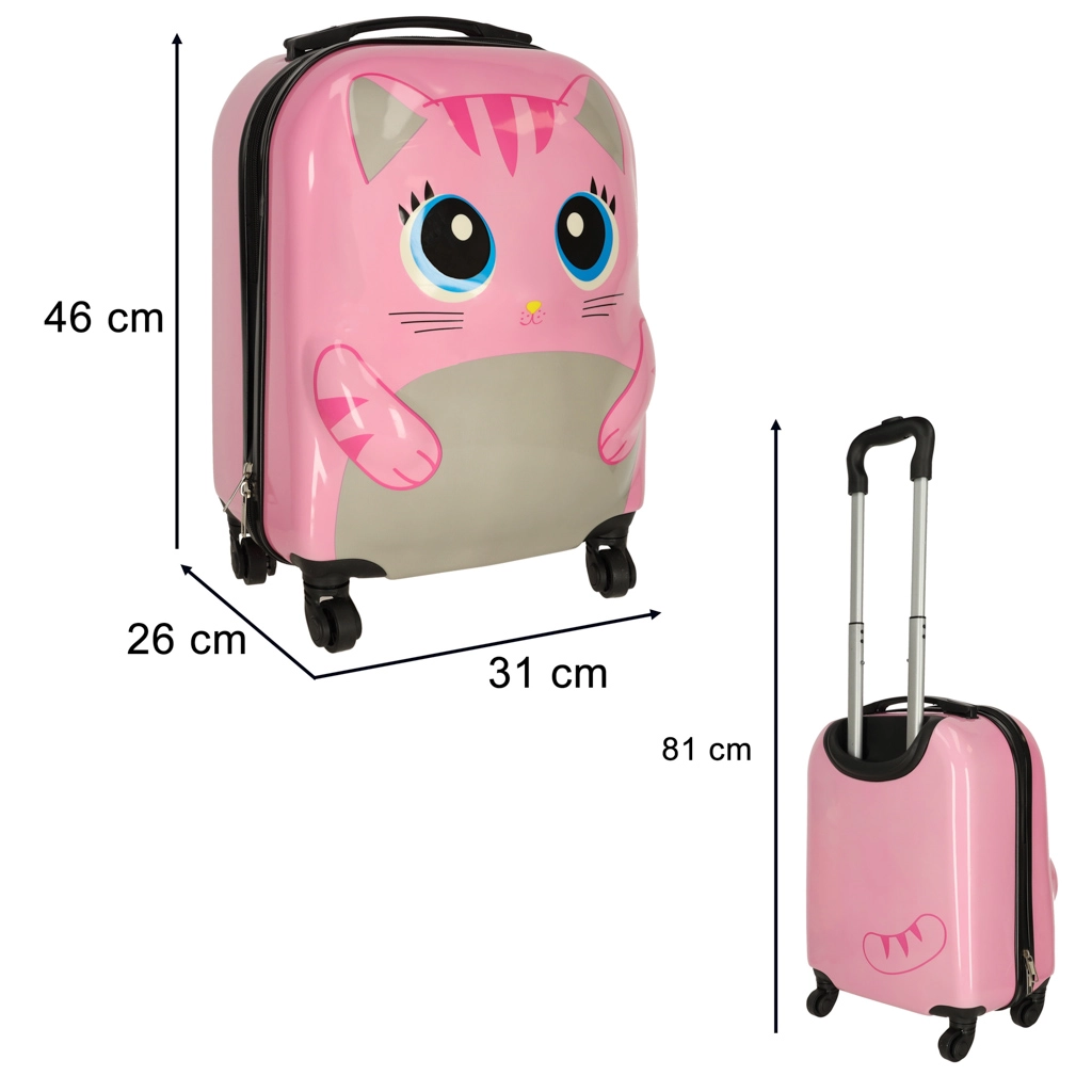 La carcasa de plástico es ligera, fácil de limpiar y el motivo de gato convierte la maleta en la compañera favorita de viaje.