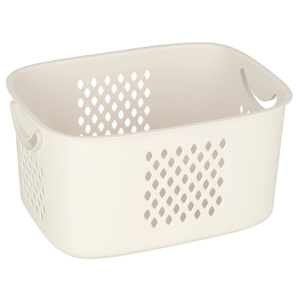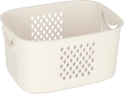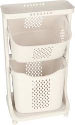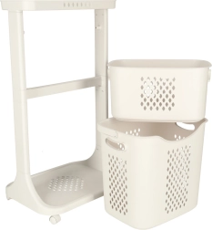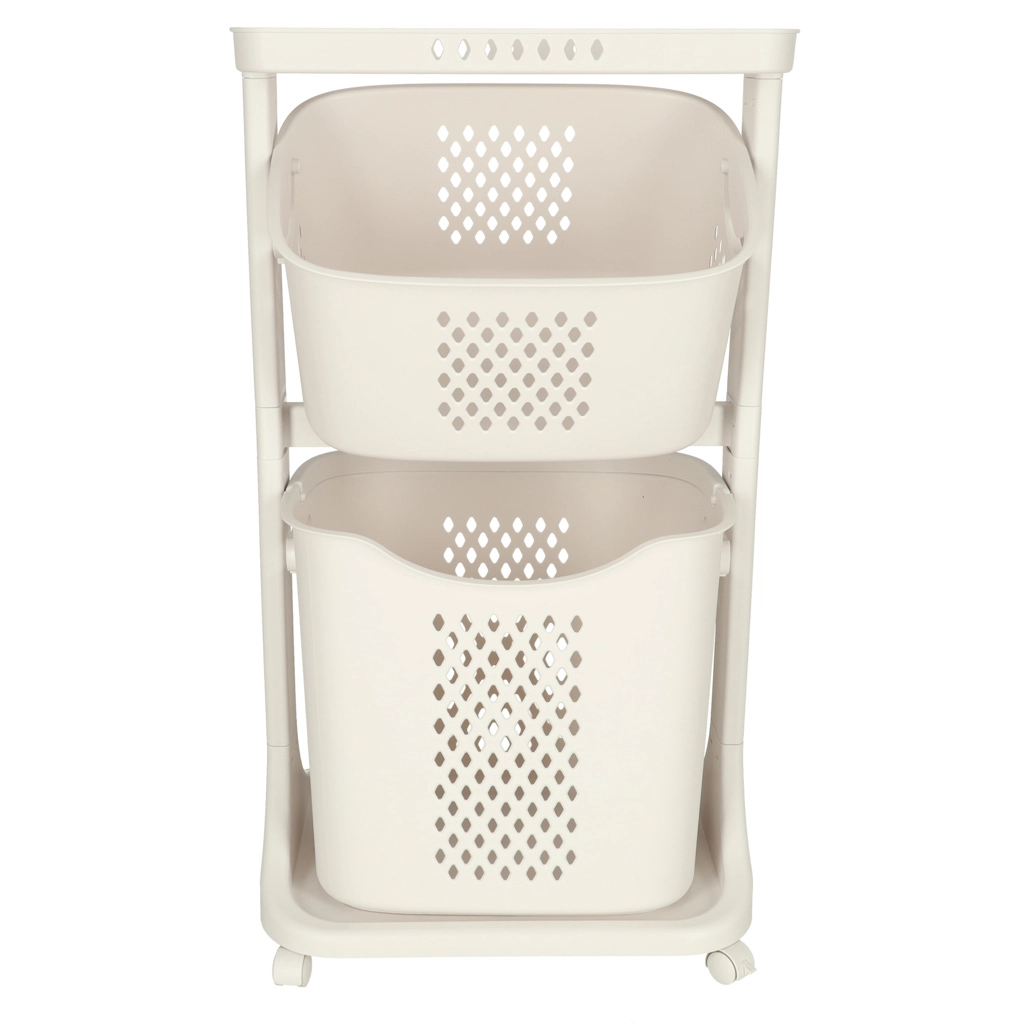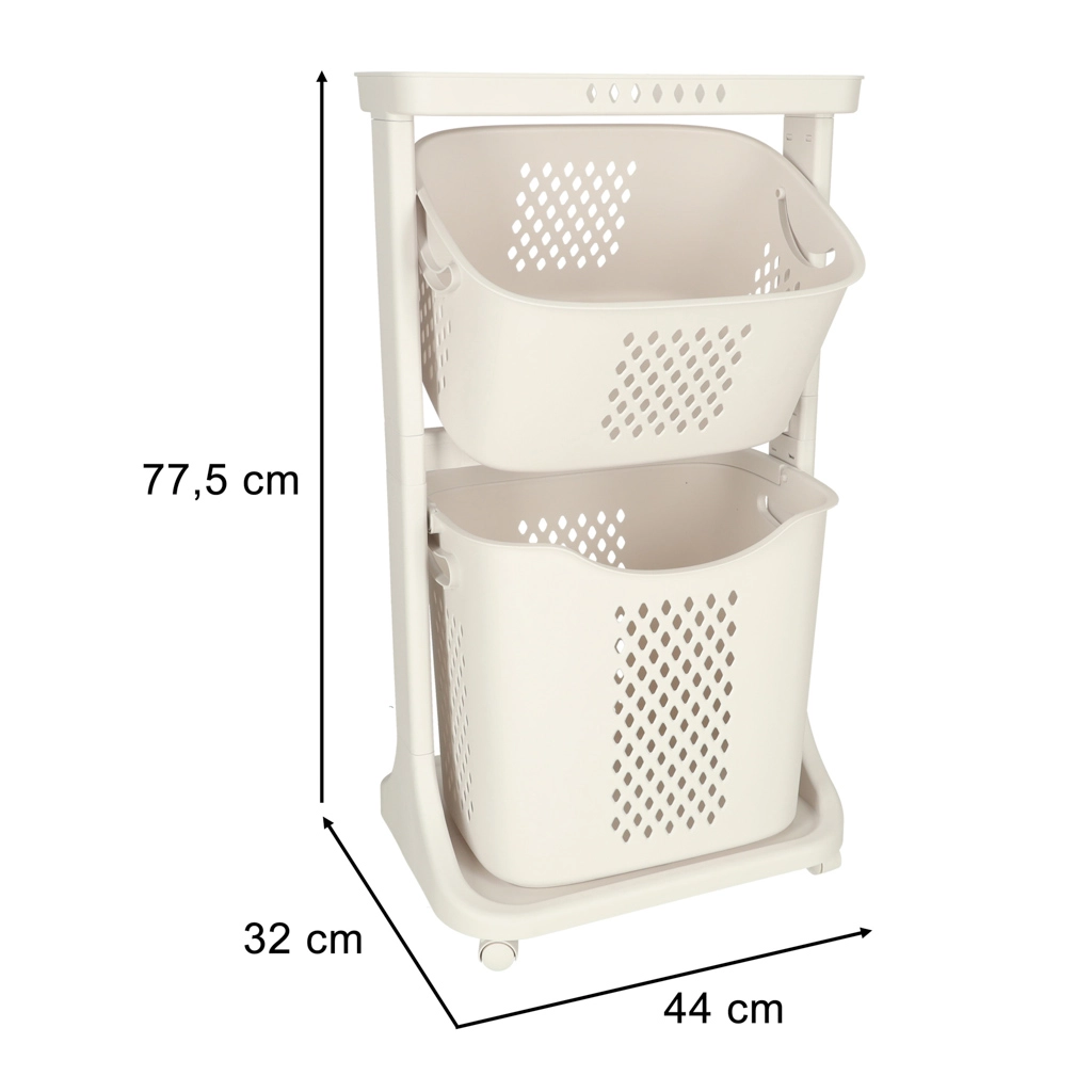 Una solución elegante y funcional para la organización diaria del hogar. Dos cestas espaciosas permiten una cómoda clasificación de la ropa o el almacenamiento de juguetes y artículos pequeños. El patrón perforado favorece la circulación del aire, manteniendo el contenido fresco durante más tiempo.