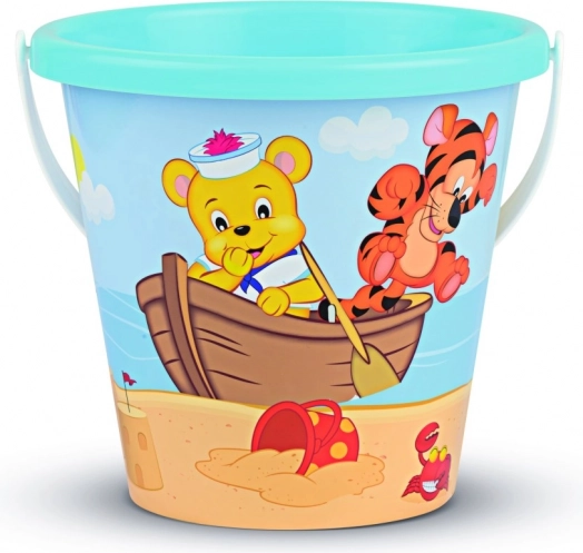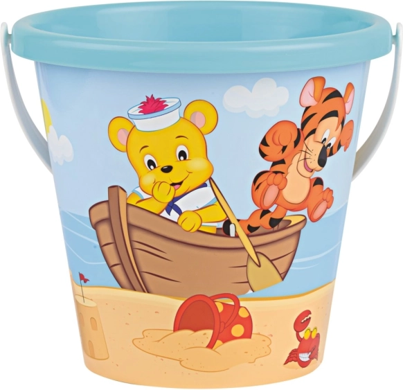 Bonito y duradero, este cubo con dibujos alegres de un osito y un tigrecito acompañará a los niños en la playa y en el arenero. Gracias a sus dimensiones compactas, se sujeta muy bien y se transporta con facilidad, mientras que el asa firme asegura llevar cómodamente arena húmeda o agua.
