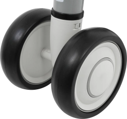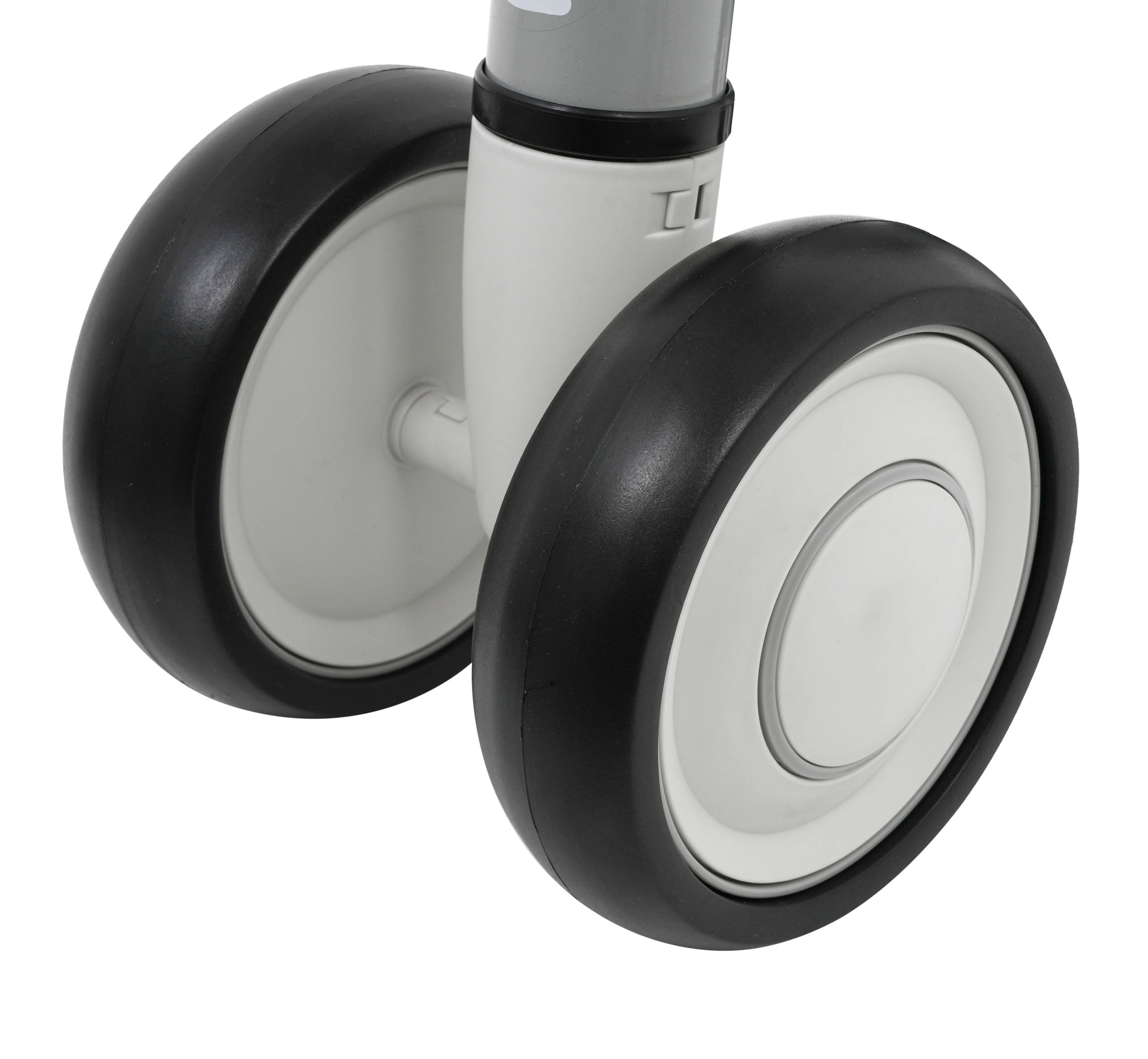 Las grandes ruedas de espuma absorben las irregularidades, no rayan el suelo y son silenciosas: ideales para el hogar y el patio.