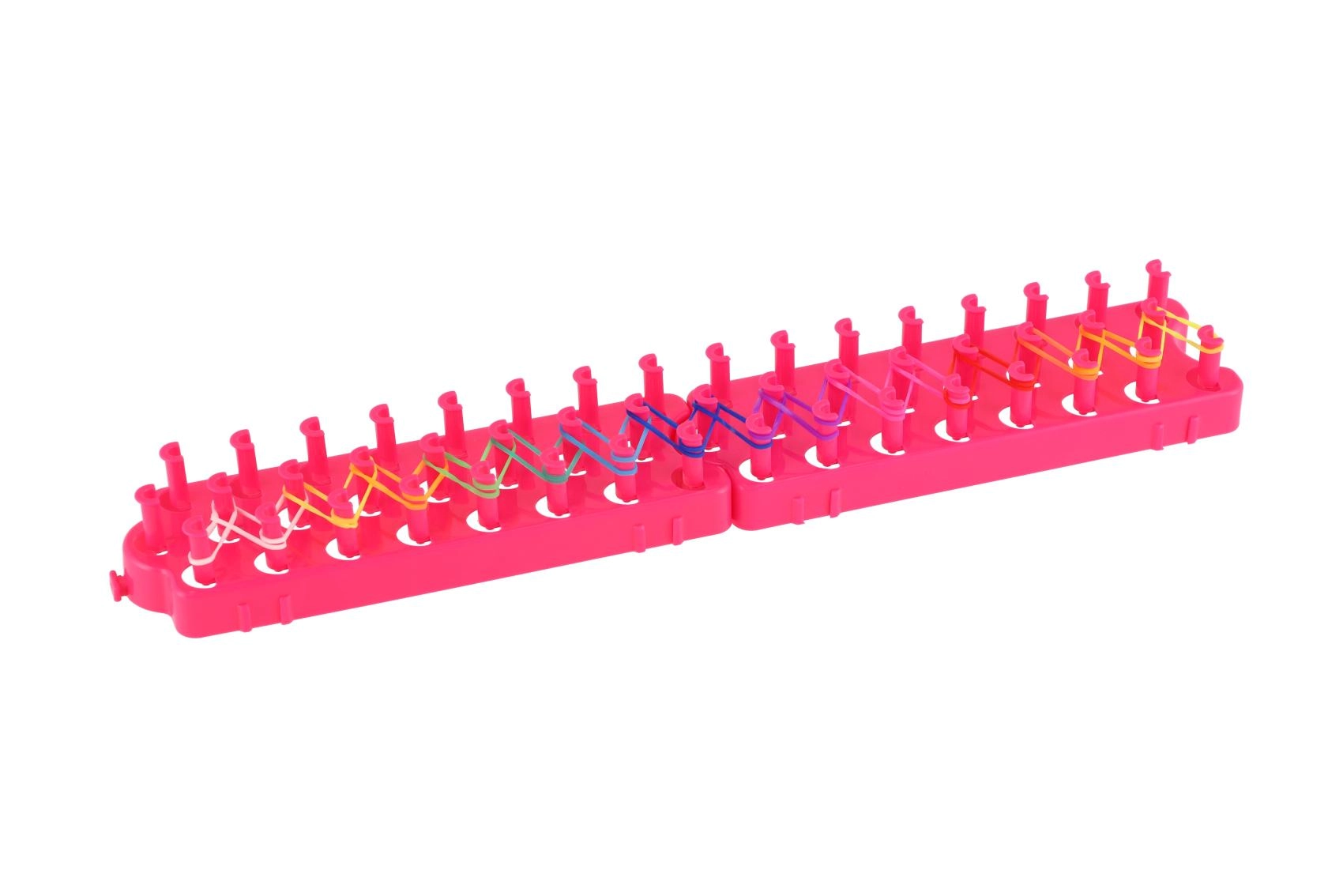 Telar modular con clavijas densas que permite crear patrones de pulseras y accesorios, desde sencillos hasta complejos.
