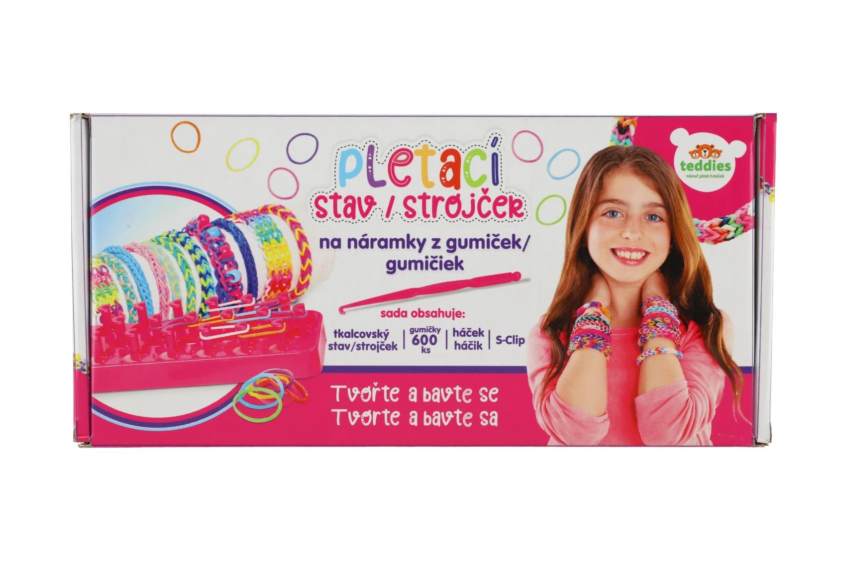 Descubre un set creativo para niños y adultos: telar, aguja de ganchillo y 600 bandas elásticas de silicona de colores para crear pulseras, adornos para el cabello o llaveros. El set fomenta la motricidad fina, la concentración y la imaginación, todo en una práctica caja de 27 × 13 × 4 cm, ideal para viajes o como regalo.
