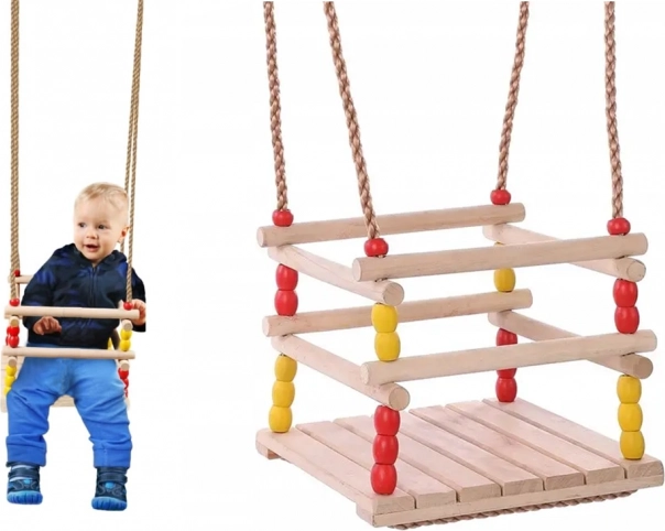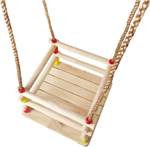 El asiento y el marco de madera natural están suavemente lijados para mayor comodidad y larga durabilidad. Resisten perfectamente el juego diario.