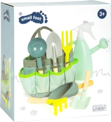 Este juego de jardinería infantil SMALL FOOT combina funcionalidad, seguridad y un estilo lúdico. Seis herramientas de formas variadas en metal resistente con agradables mangos de madera se complementan con una práctica bolsa con múltiples bolsillos y un pulverizador–regadera para el riego. Gracias al almacenamiento inteligente, los pequeños jardineros lo llevan todo ordenado y pueden dedicarse plenamente a cavar, plantar e incluso a sus primeras cosechas.