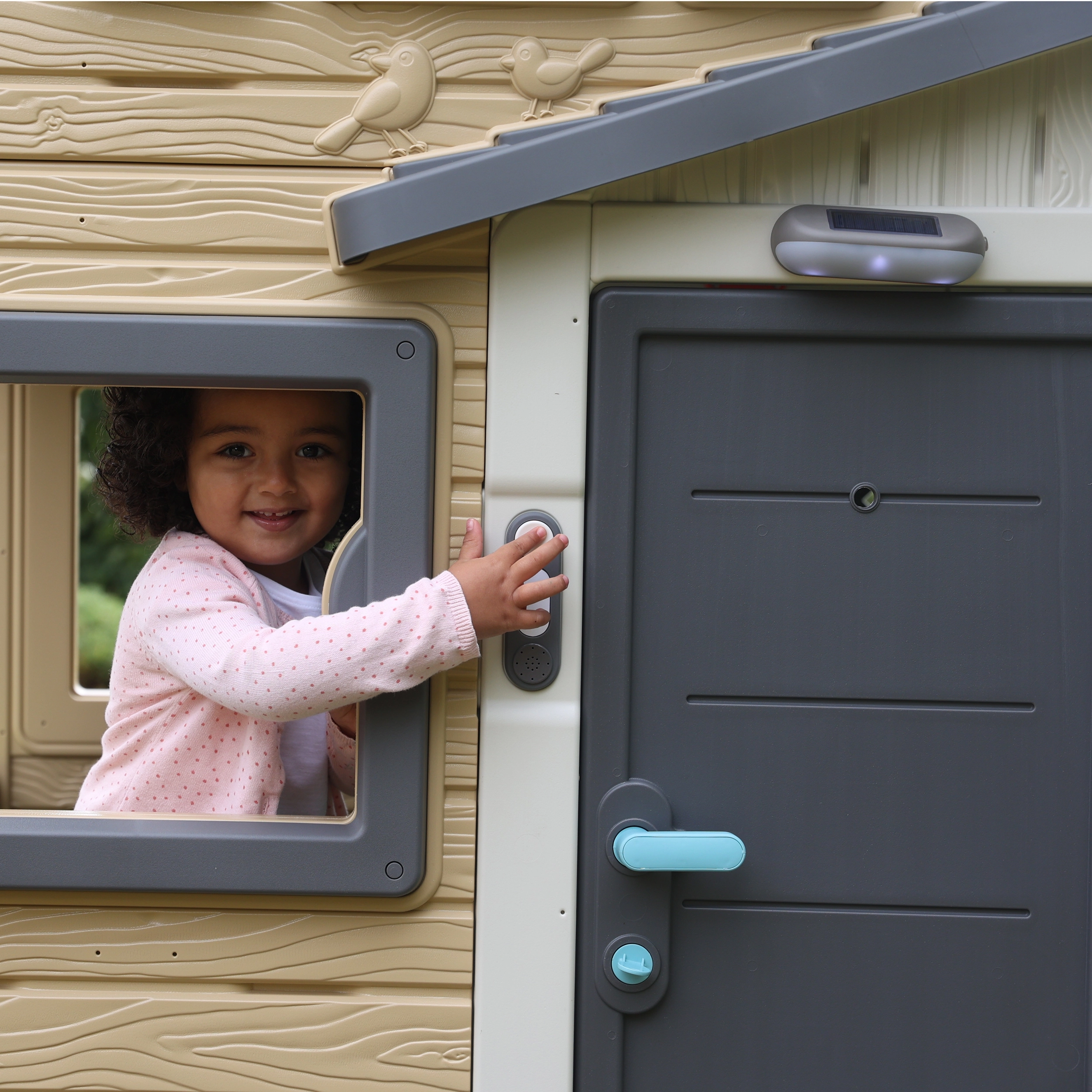 Se puede escribir el nombre del niño en el timbre, convirtiendo la casita en su verdadero hogar.