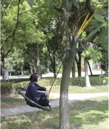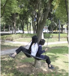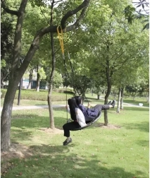 La instalación es rápida e intuitiva: incluye anillas metálicas en los extremos de las cuerdas para un colgado sencillo. La longitud ajustable de las cuerdas hasta 180 cm permite adaptar la altura a distintos usuarios y espacios. Con una capacidad de 150 kg y cuerdas de 10 mm de grosor, el columpio es seguro tanto para niños como para adultos.