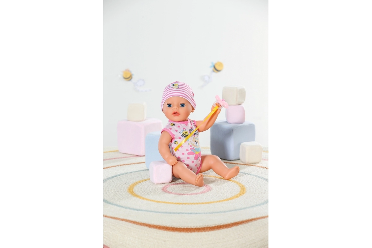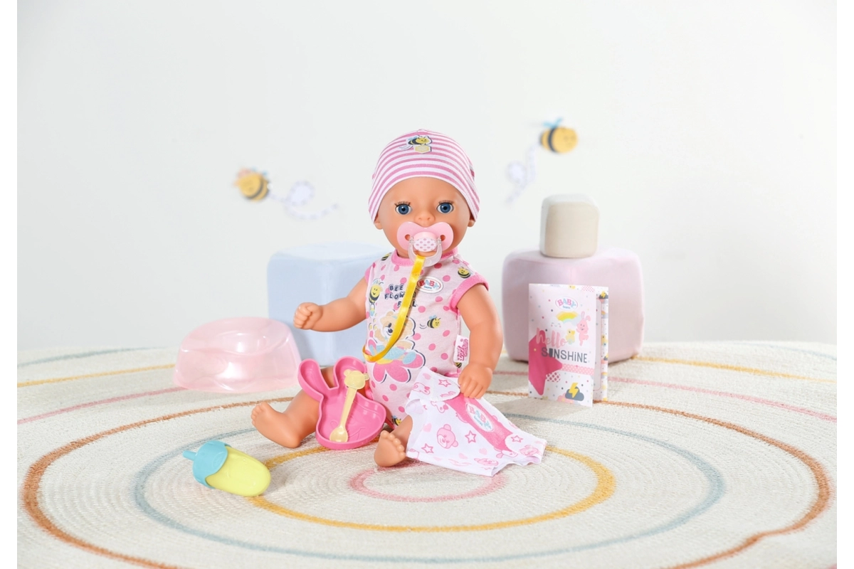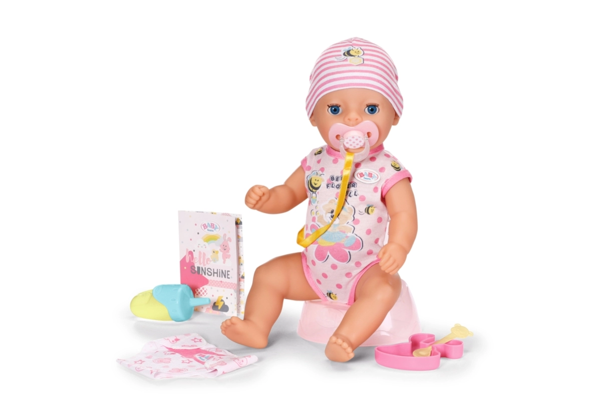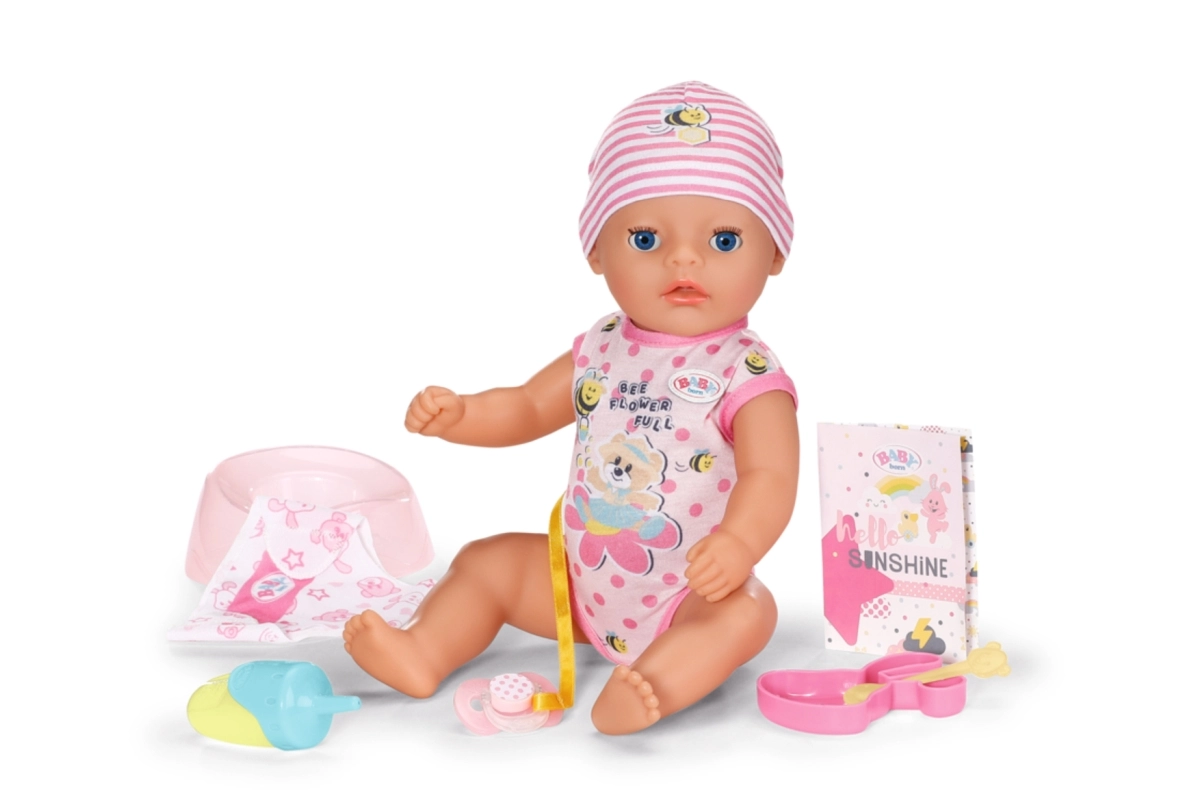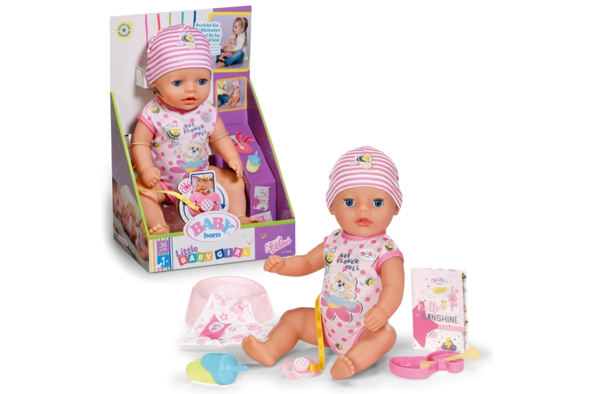 La adorable muñeca BABY born Lena 36 cm es el primer bebé ideal para los más pequeños a partir de 1 año. Ofrece 7 funciones realistas sin pilas: bebe del biberón, hace pis en el pañal, usa el orinal, se puede bañar y gracias al chupete mágico abre y cierra los ojos. Su cuerpo ligero y las extremidades móviles facilitan el cambio de ropa y el juego de cuidados.