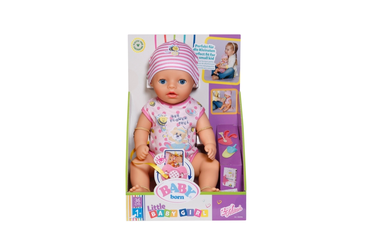 Conoce a tu nueva compañera de juegos: la muñeca BABY born Lena 36 cm. Gracias a sus dimensiones reducidas y bajo peso, se adapta perfectamente a las manos infantiles y fomenta la motricidad fina y el juego imaginativo. Las funciones realistas sin necesidad de pilas convierten el cuidado diario en diversión: desde dar el biberón hasta el entrenamiento en el orinal.