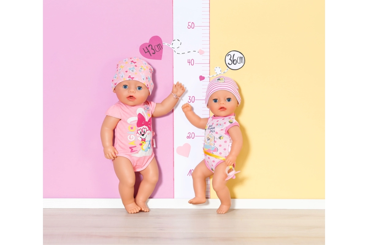 El chupete mágico permite a la muñeca cerrar y abrir los ojos: gíralo a la izquierda y se cerrarán; gíralo a la derecha y se volverán a abrir. Al acostarla, cierra los ojos incluso sin chupete. Los brazos, piernas y cabeza móviles facilitan sentarla, cambiarla y crear distintos escenarios de juego.