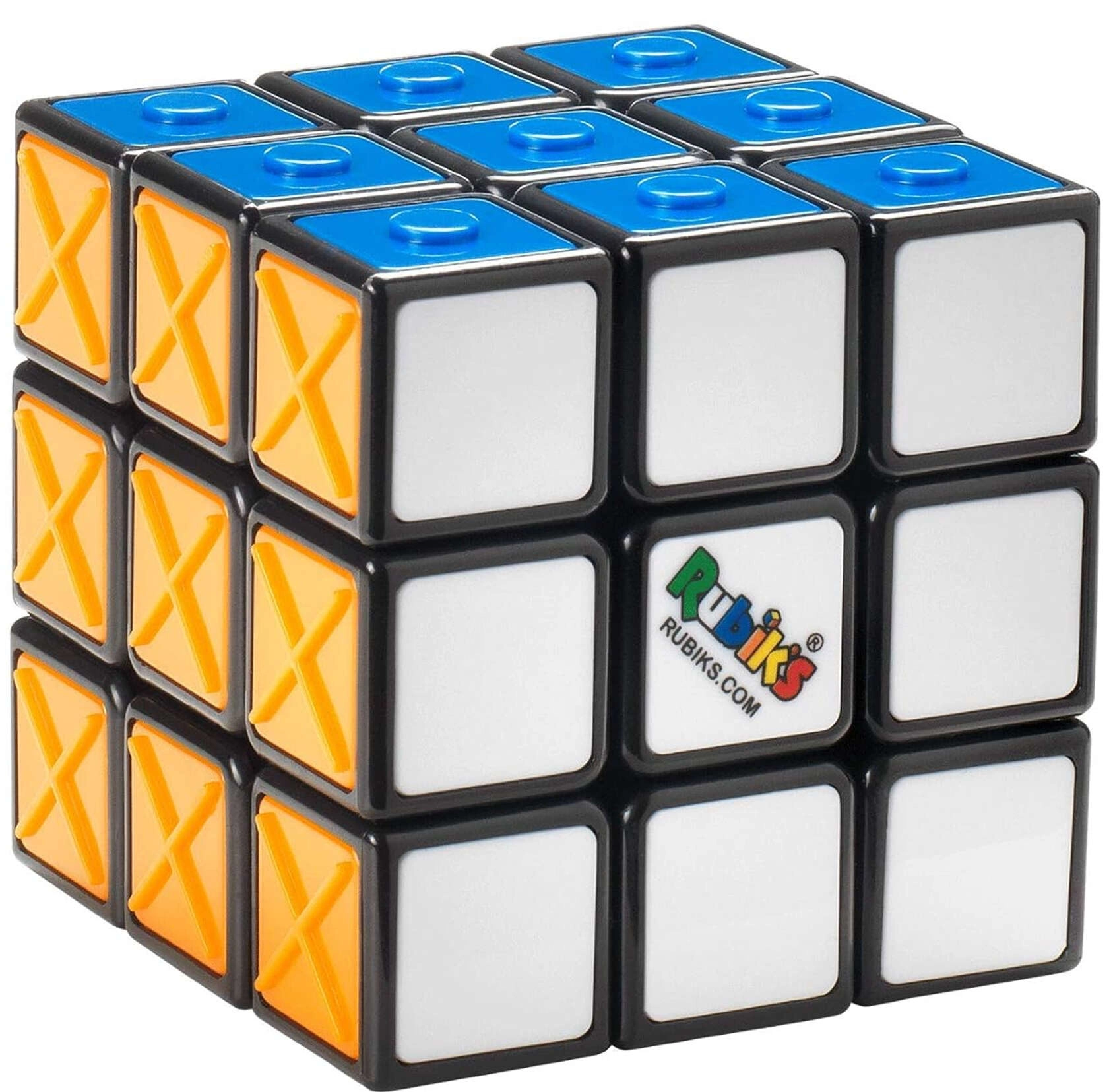 El Cubo de Rubik 3x3 Rubik’s Sensory Cube ofrece el legendario rompecabezas en una forma accesible con patrones en relieve en cada color. Las texturas —puntos (amarillo), cuadrados (rojo), círculos sólidos (azul), anillos (verde), cruces (naranja) y liso (blanco)— permiten distinguir las caras también por el tacto.