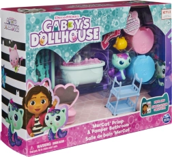 Abre el paquete y entra en el mágico ambiente del baño que los niños conocen de la serie La casa de muñecas de Gabby. Dentro encontrarás la figura coleccionable de Sirenita Gatuna, muebles detallados y accesorios para un juego creativo: patito de goma, fragancia/perfume, toalla e incluso una mascarilla de pepino que la figura puede ponerse de verdad.