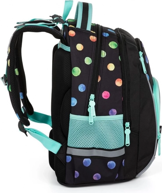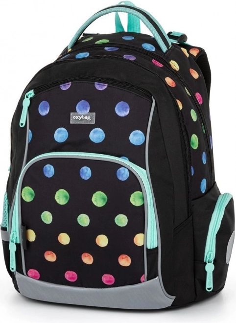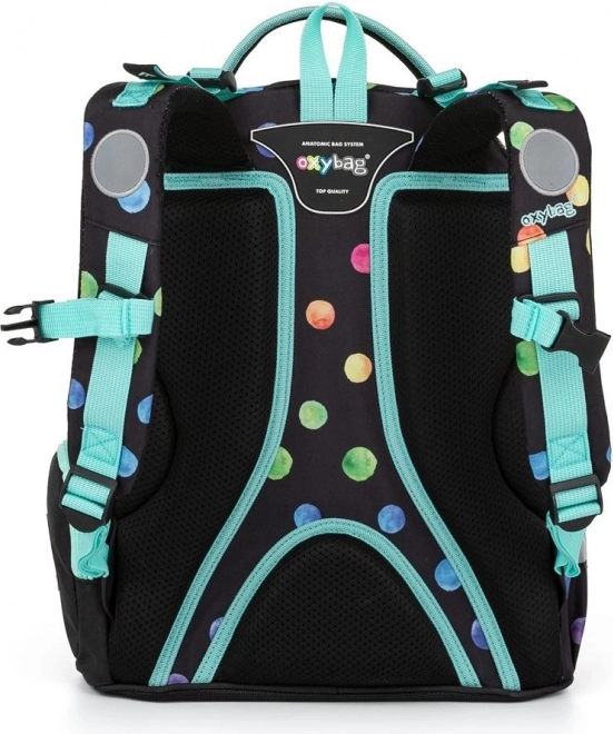 El set escolar Oxybag OXY GO Dots está diseñado para niños a partir de 125 cm de altura y ofrece la combinación ideal de comodidad, durabilidad y un diseño atractivo con lunares multicolor. La mochila pesa solo 0,99 kg, cuenta con espalda firme y transpirable y correas de hombro ajustables para un uso saludable y cómodo. Gracias a los elementos reflectantes, el niño es más visible incluso en condiciones de poca luz.