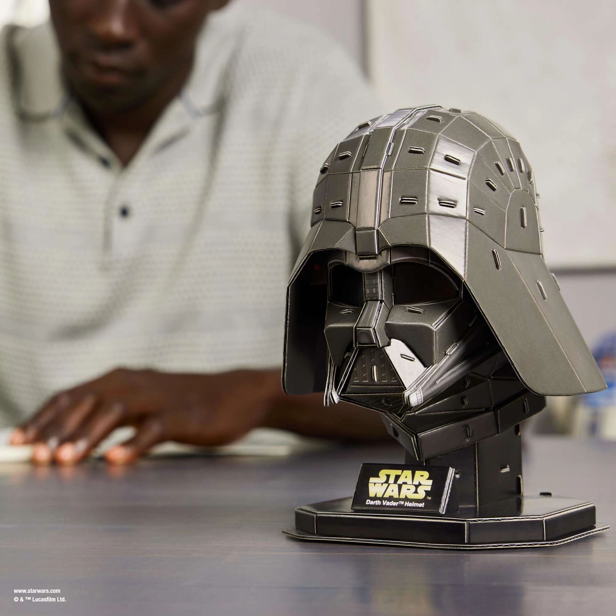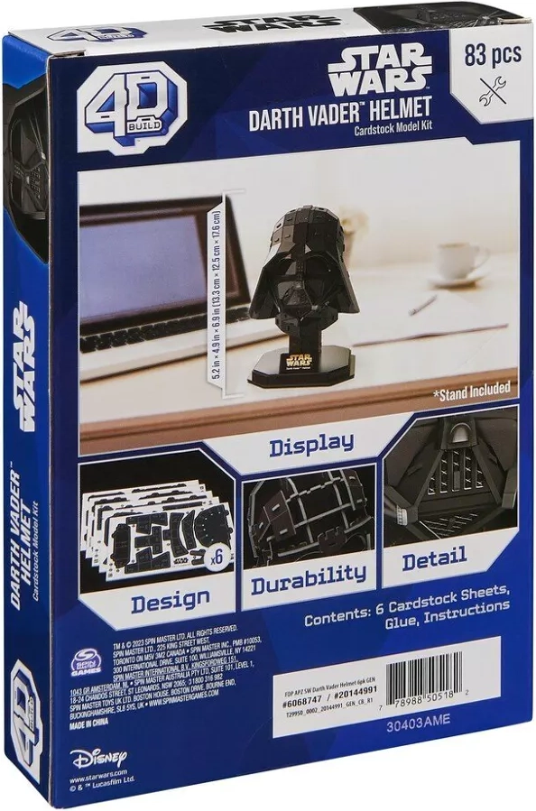 El modelo captura fielmente la forma y los contornos del casco de Darth Vader, incluido un elegante pedestal con el emblema de STAR WARS: ideal para exhibir con orgullo.
