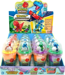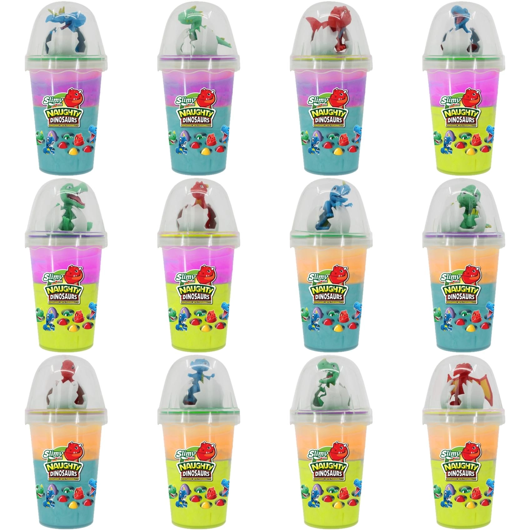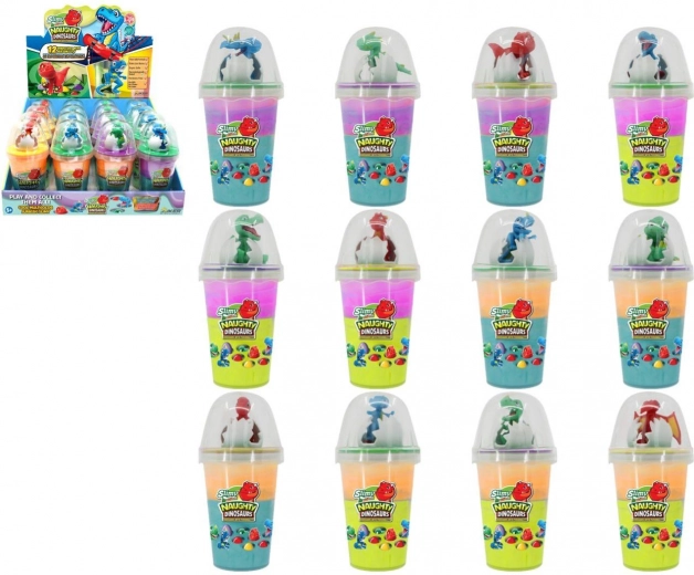 Descubre distintos colores de slime y figuritas de dinosaurios. La colección ofrece 12 diseños atractivos para disfrutar coleccionando.